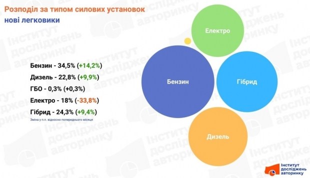 Сегмент нових автомобілів показує аналогічну, але більш м’яку тенденцію. Тут покупці частіше віддають перевагу компромісу між технологіями та надійністю ДВЗ.