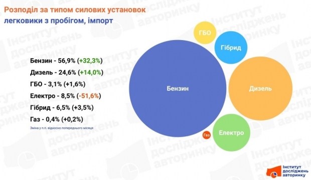 Тут зафіксовані найзначніші коливання. Коли в січні потік електромобілів фактично зупинився, частки інших видів пального «підскочили» виключно математично.