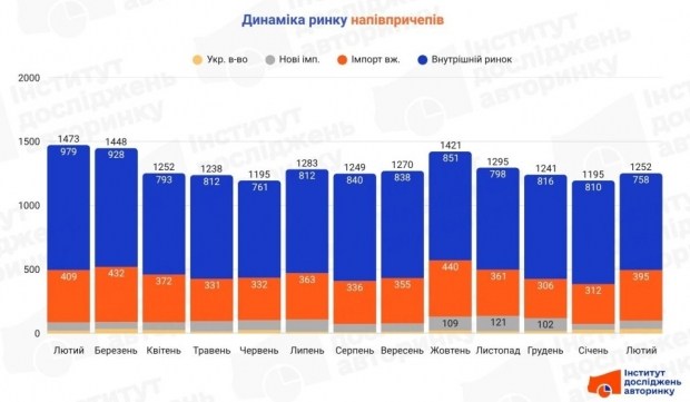 Лютий місяць у статистиці ринку напівпричепів відображає зміни структури в українській логістичній галузі. Незважаючи на загальне зниження активності в порівнянні з попереднім роком, деякі галузі показують динаміку, яка відрізняється від тенденцій в сегменті вантажівок. Загалом, за місяць було зафіксовано 1252 реєстрації, що свідчить про поступове відновлення потреби в оновленні автопарків після зимового періоду спокою.