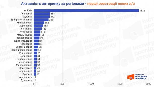 Ринок нових автомобілів показує найбільш радикальну централізацію. Київ фактично збирає майже половину всіх реалізацій у державі, що обумовлено не лише високою купівельною здатністю киян, але і реєстрацією великих корпоративних автопарків саме у столиці. Також свій внесок роблять лізингові організації та державні підприємства з офісами у столиці. Львівська, Одеська та Дніпропетровська області йдуть наступними зі значною різницею, але стабільно тримають статус регіональних лідерів. В інших частинах країни продажі нових авто залишаються на набагато нижчому рівні, що підкреслює глибоку нерівність у комерційній діяльності між столицею та регіонами.