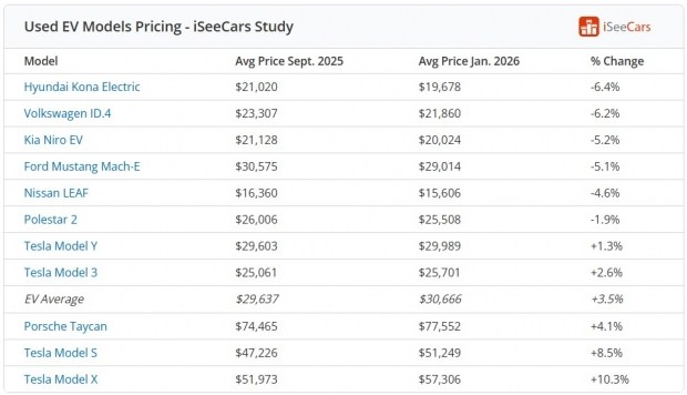У вересні середня вартість вживаної Tesla складала 30 040 доларів, а вже в січні – 31 329 доларів. Якщо ж виключити Tesla зі статистики, ситуація змінюється на протилежну: інші електромобілі (за винятком преміального та обмеженого в тиражі Porsche Taycan) стали дешевшими з 24 629 до 23 738 доларів.