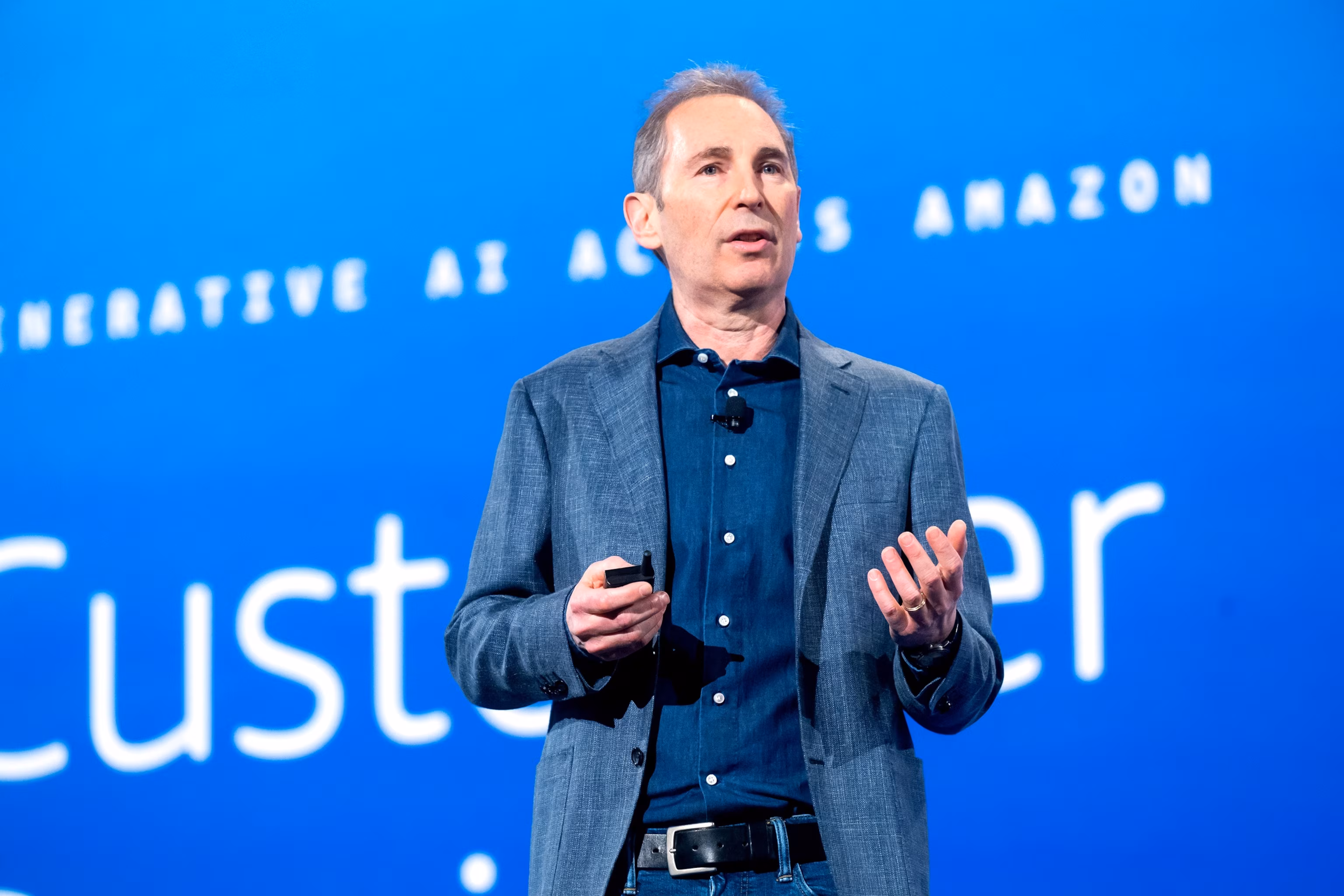 На цьому фото з архіву від 3 грудня 2024 року генеральний директор Amazon Енді Джассі виступає під час основної доповіді на конференції AWS re:Invent 2024, організованій Amazon Web Services, у Лас-Вегасі. Ноа Бергер/Getty Images для Amazon Web Services, ФАЙЛ