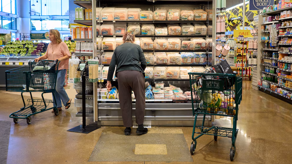 2:57 Люди купують продукти в магазині в Лос-Анджелесі, 31 жовтня 2025 року. Еллісон Діннер/EPA через Shutterstock