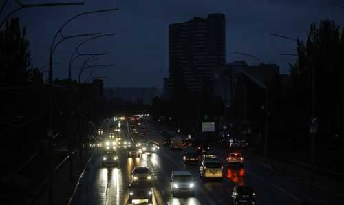 Фото: EPA/UPG Автомобільний рух по неосвітленій вулиці під час відключення електроенергії після російських ударів по Києву, 10 жовтня 2025 р.