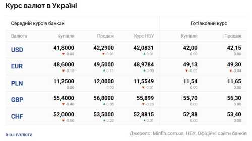 - у monobank: 41,81 – 42,19 грн/$ та 48,65 – 49,24 грн/EUR