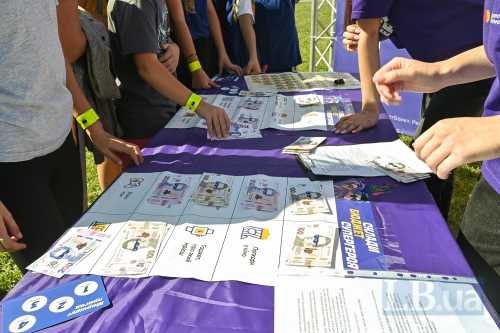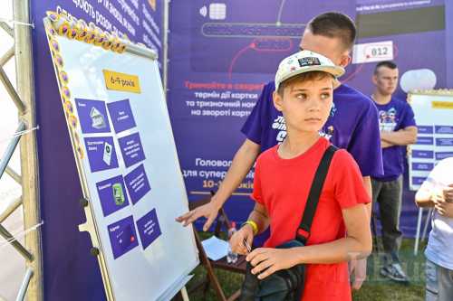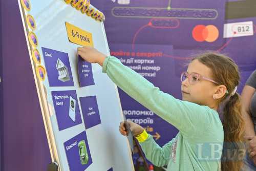 Андрійкові — 10 років, і він безпомилково визначає на спеціальному стенді, що таке банк, банківський додаток, картка, банкомат і як абсолютно точно не слід поводитися з грошима. «Ходити в казино і там їх розтринькувати!», — каже він.