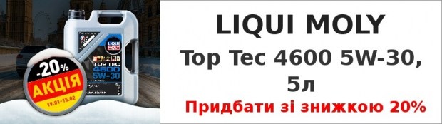 З 19 січня по 15 лютого 2026 року триває акція «Надійне мастило для європейських автомобілів». У цей період моторне мастило Top Tec 4600 5W-30 в п’ятилітровій каністрі доступне зі знижкою 20% у всіх офіційних точках продажу LIQUI MOLY в Україні.