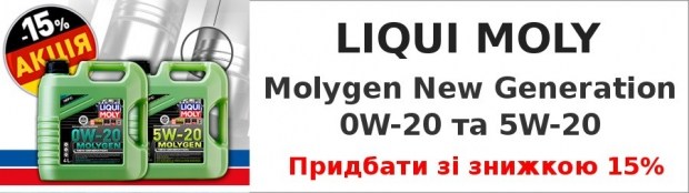 З 16.02 по 15.03.2026 діє національна акція «Захист за будь-яких умов» https://liquimoly.ua/ua-aktsiya-zahist-za-bud-yakih-umov – знижка 15 відсотків на мастила Molygen New Generation 0W-20 та 5W-20 у фасовці 4 літри. В цей період акційні мастила можна знайти у всіх офіційних точках реалізації LIQUI MOLY по всій Україні.